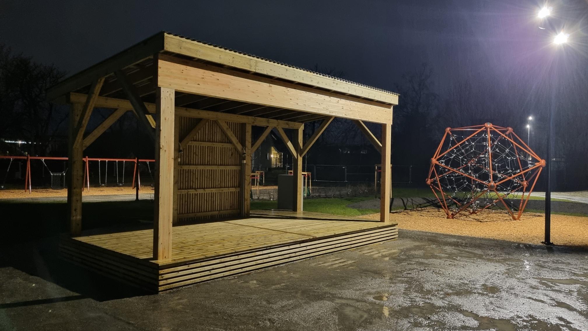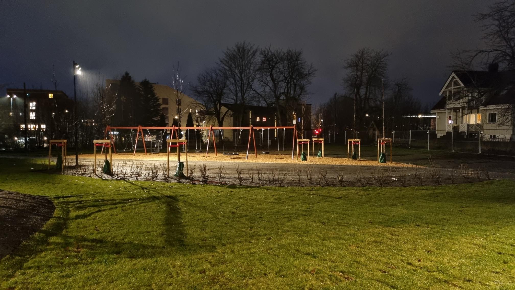 I samarbeid med vår bygg og konstruksjonsavdeling plassbygde vi en universell utformet scene for mindre arrangementer som konserter og andre tilstelninger, samt 3 egenproduserte lekehus. Ny parkbelysning ble montert slik at området også kan benyttes på kveldstid som møteplass for lek og aktiviteter.